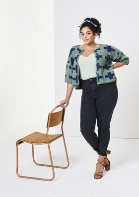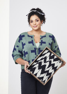 In this eye-catching collection, Brandon Mably showcases his love of pattern and geometry using lively shades of Rowan Softyak DK. Brandon has designed eight bold colourwork patterns for you to apply to either a sweater or a jacket. Once you have chosen your garment - sweater or jacket – you will then select which pattern you want to work it in. One garment, eight options - which one will you choose?