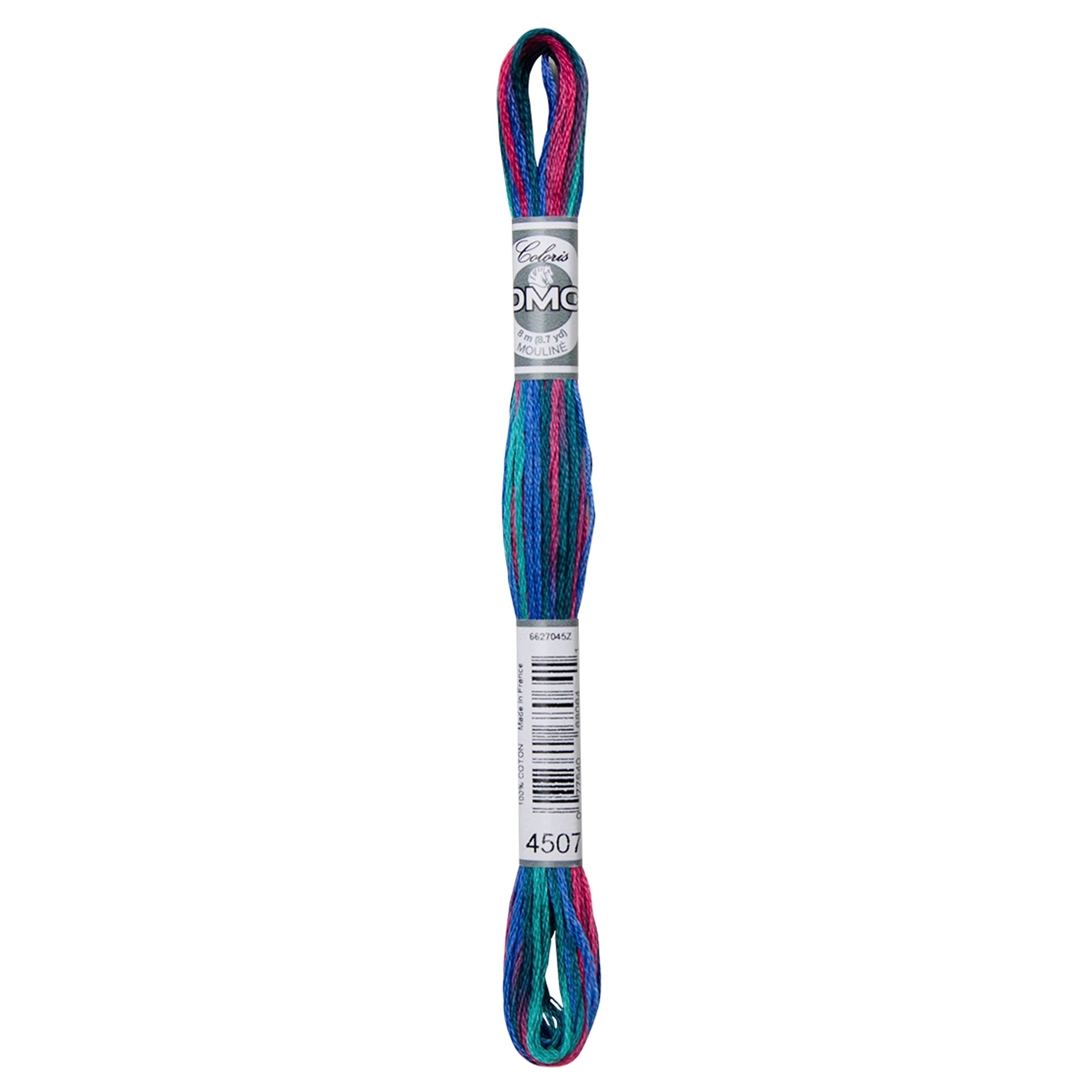 Multi-coloured DMC Coloris stranded cotton combines four complimentary colours in each skein of six stranded cotton. The complete colour change every 5cm creates intricate effects with one thread. 100% cotton.