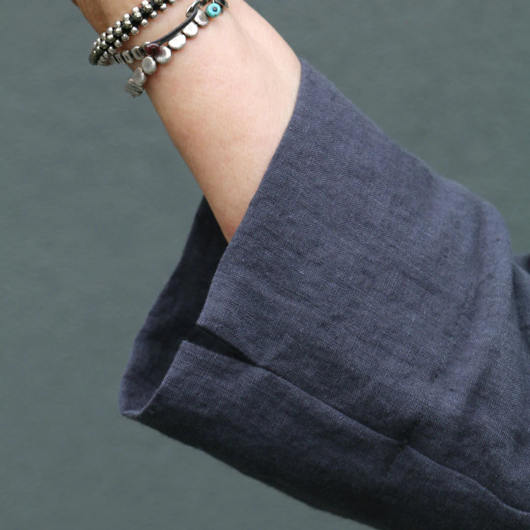 The Harlow Shirt is a hip length button-through shirt with a soft, relaxed look. It features a swing back with centre back seam, side seams that angle to the front and a split at the hem that creates a slightly flared silhouette. Topstitching highlights the patch pockets, convertible collar and back yoke with forward and extended shoulders. The bracelet length sleeves have deep hems with a small slit allowing them to be worn up or down.
