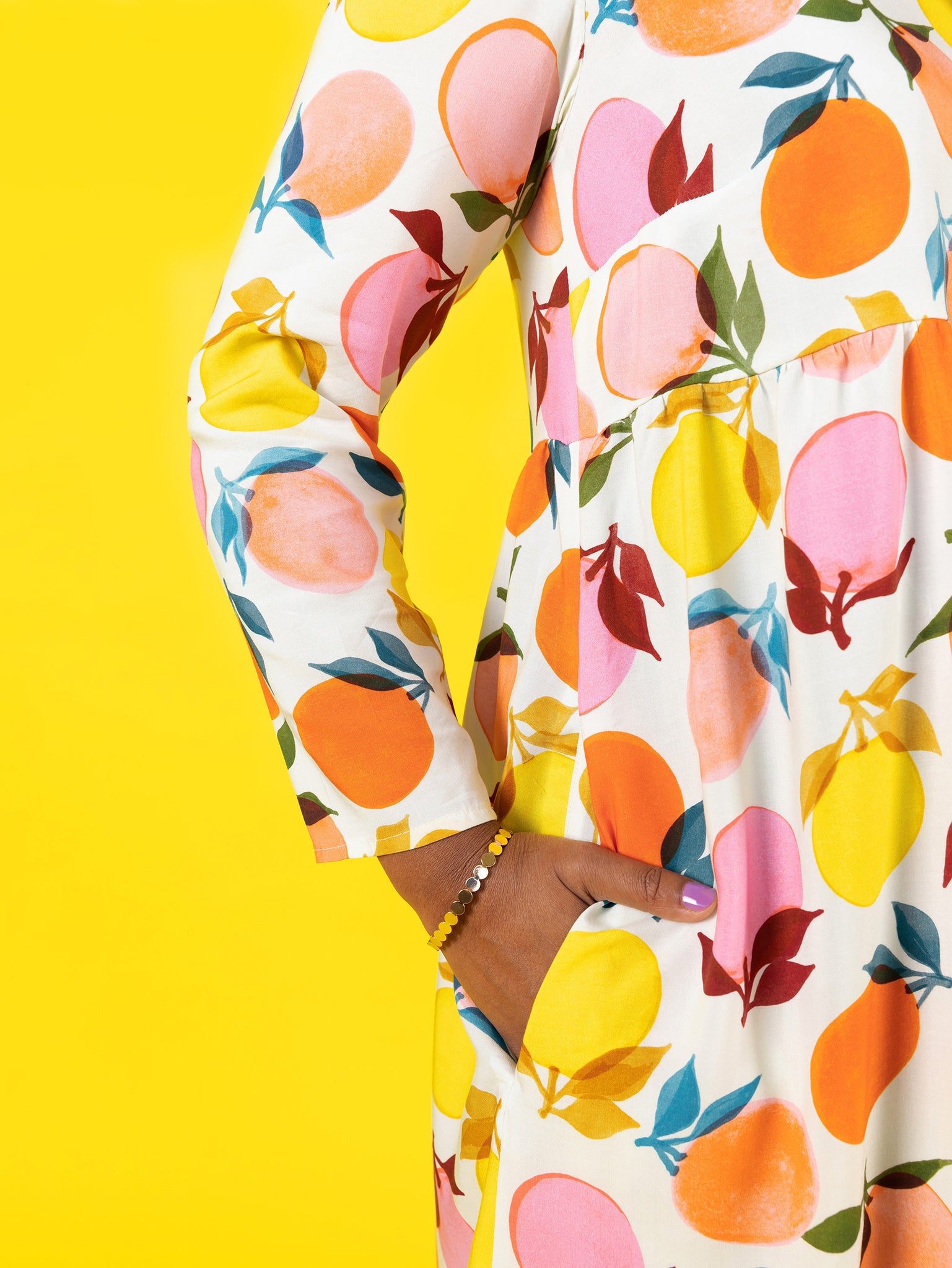 Indigo has a bodice shaped with bust darts, gently curved empire waistline, and floaty gathered skirt. Make it as a top with dipped hem ending at the low hip, or a knee-length dress with straight hem and pockets. Choose from three-quarter flounce sleeves or slim-fitting bracelet sleeves. You’ll want to wear one every day of the week.