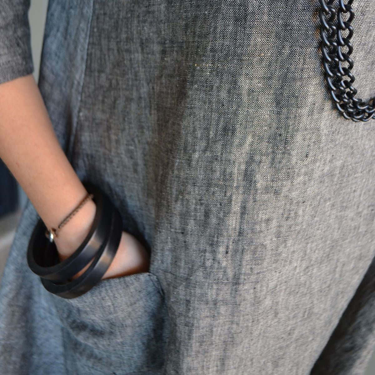 The Lily Linen Dress is flared, flattering, light, loose and comfortable. Featuring a cut-away shoulder line, pleat tucks on the hem and a clever folded pocket detail. Lily can also be made as a sleeveless dress (Note: extra binding required).