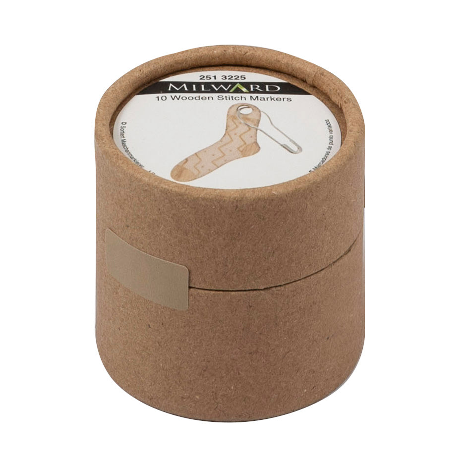 Set of laser engraved, wooden stitch markers on bulb pins. The strong, versatile bulb pins allow you to easily add the stitch markers either directly onto your needles or hook or onto your stitches. They are light weight to ensure they don't stretch your stitches. Each pot contains 10 sock shaped stitch markers with a fun knit engraving. Each piece measures: (w/h) 1.3 x 5.4cm (including the pin). Each tub measures: (h/diam) 5.2 x 5cm. If you prefer to use stitch markers directly on to your needles/hooks, the bulb will fit up to 8.0mm diameter.