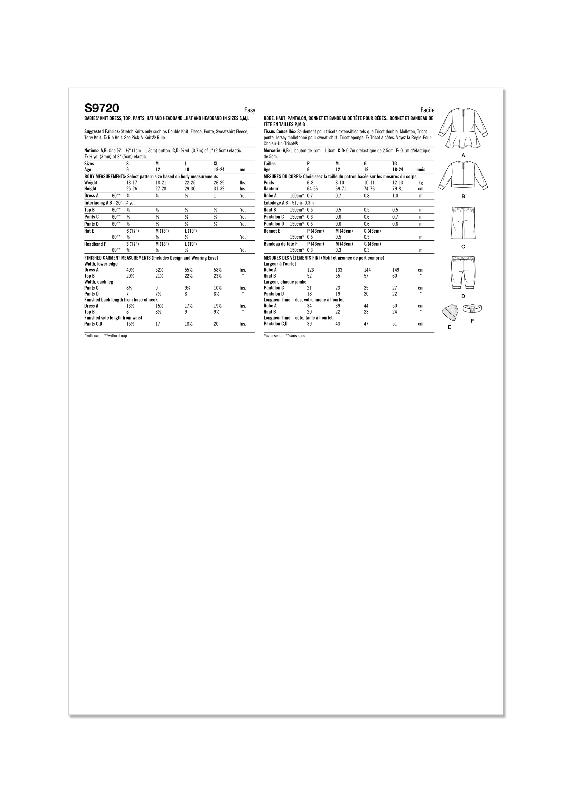 Simplicity Sewing Pattern 9720 A: Babies’ Knit Dress, Top, Pants, Hat and Headband