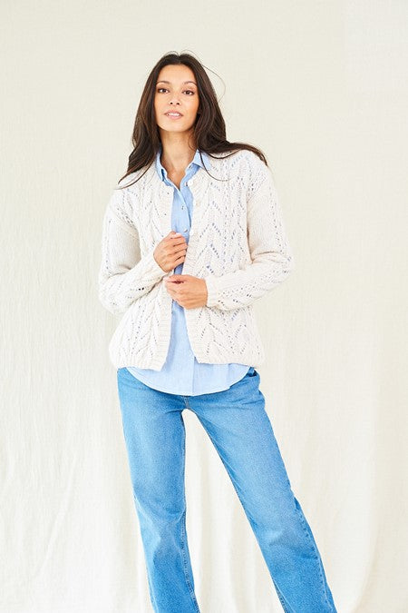 Elegant yet versatile, this gorgeous lace detailed cardigan from pattern 10016 features delicate lace stitching on the front and sleeves. Dress it down with a pair of jeans or wear with tailored trousers for a smarter look.